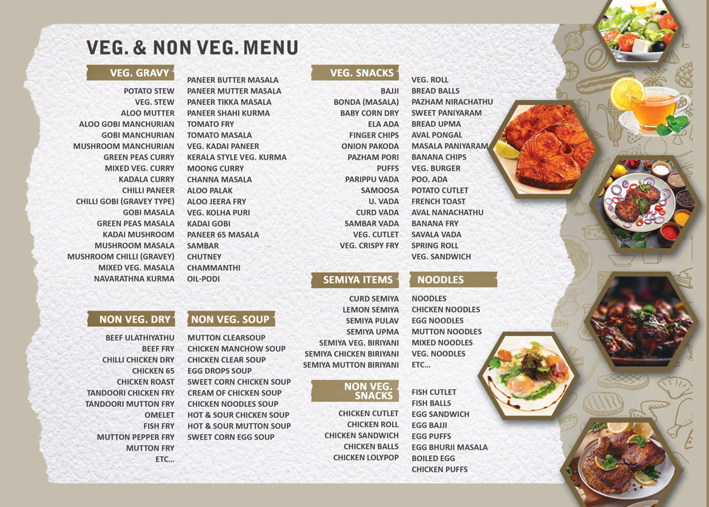 • Veg. and Non Veg. Food Menu
